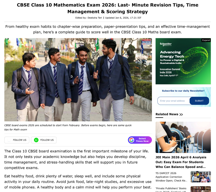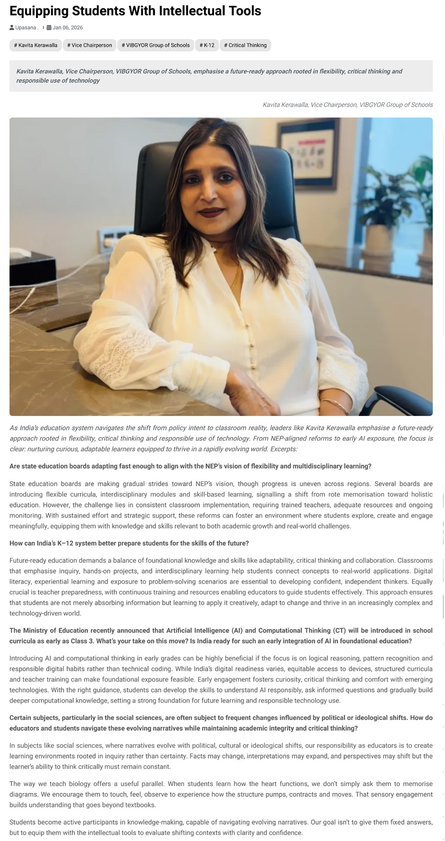 | May-2018 | VIBGYOR Group of Schools Delivers a 100 Percent in IGCSE Results | Website | Businesswire India |