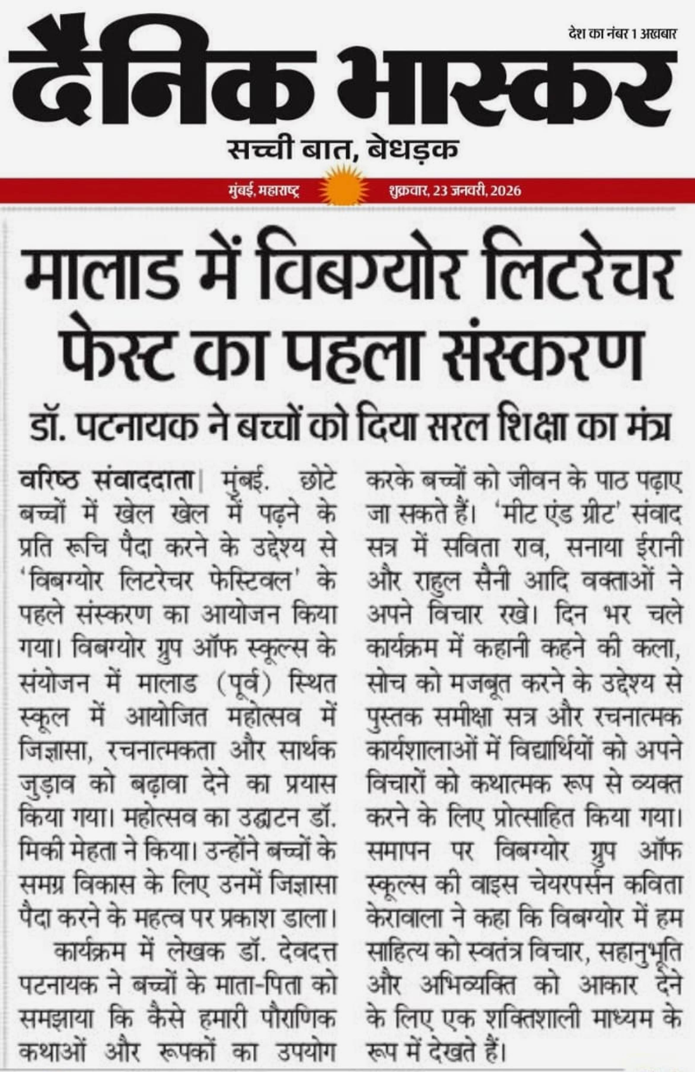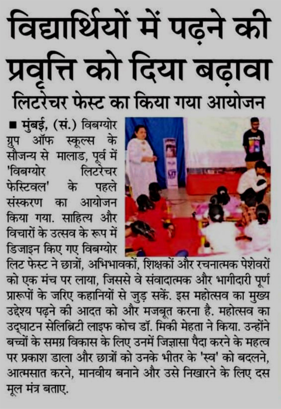 | Oct-2017 | VIBGYOR A launch pad for your Child's imagination | Digital Learning Magzine | Mumbai | English |