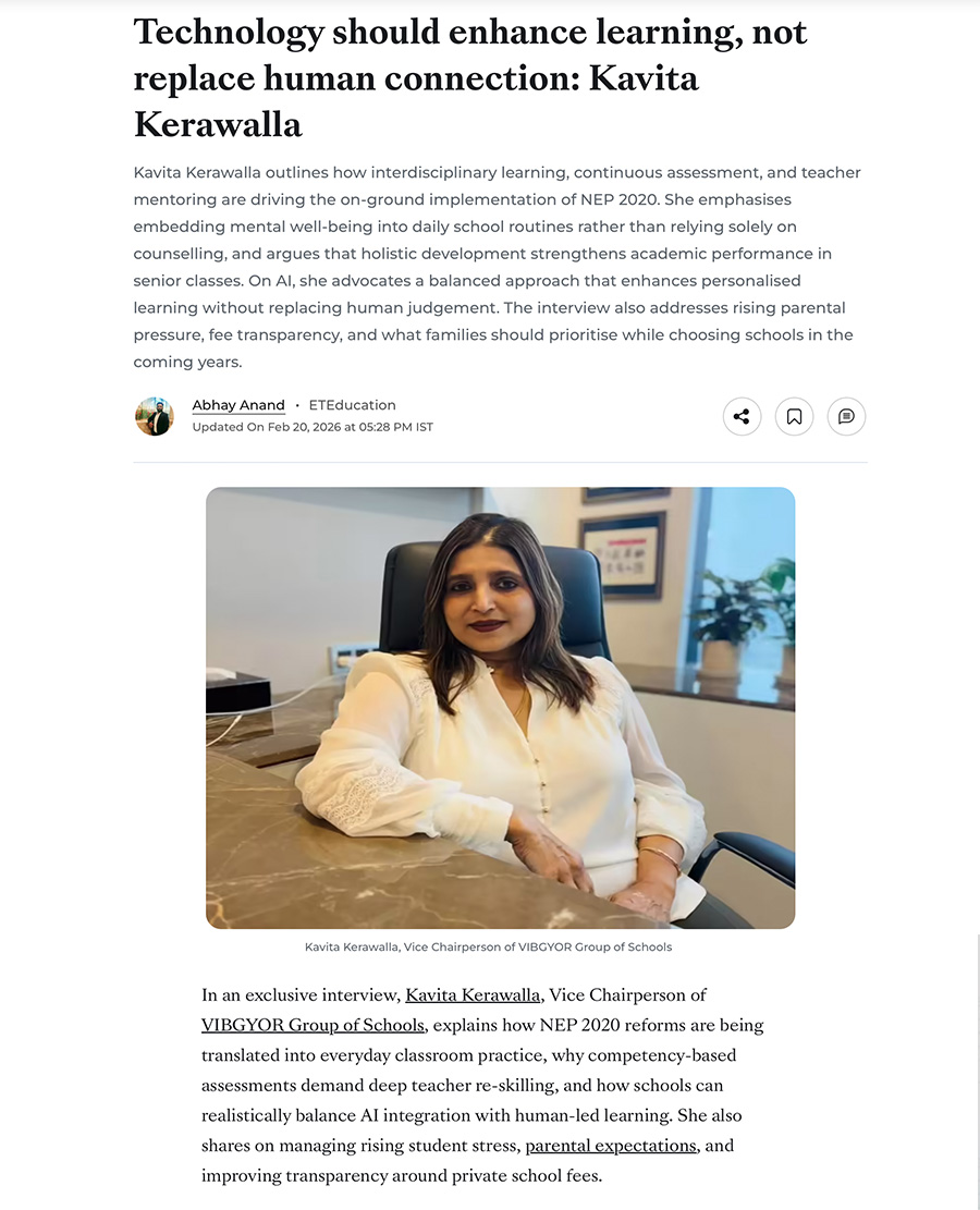 | September-2018 | VIBGYOR HIGH students experience different cultures through exchange programme | Website | Times of India |