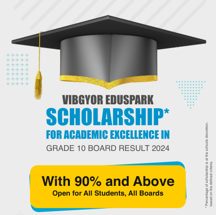 Our Grade 11 and 12 Scholarship Programme - The VIBGYOR Edu Spark Scholarship is designed to celebrate exceptional educational achievers of Grade 10. It recognises and rewards academic excellence of students who have scored 90% and above in Grade 10 Board examinations, across all boards.