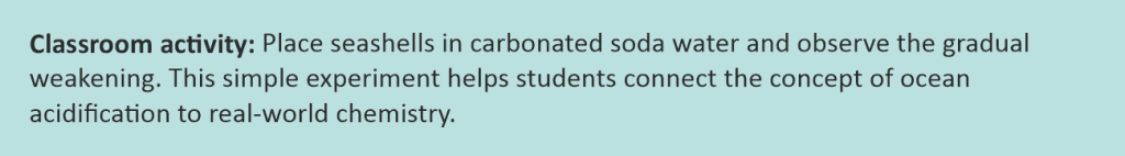 Imagine placing seashells or eggshells in a glass of fizzy soda. Over time, they lose their shine and crumble. That’s precisely what carbon dioxide does to the ocean. The CO2 dissolves into seawater, causing ocean acidification, which weakens corals, shellfish, and eventually the entire food chain.