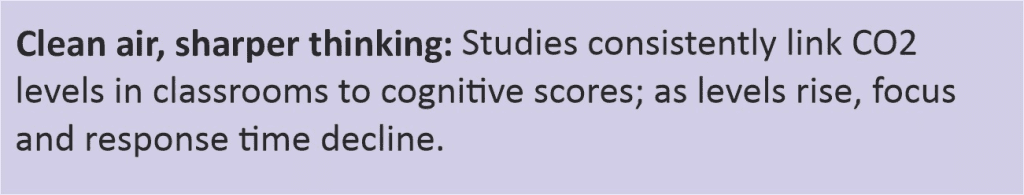 - Ventilation first: Fresh air and CO2 sensors keep the mind alert and classrooms healthier.