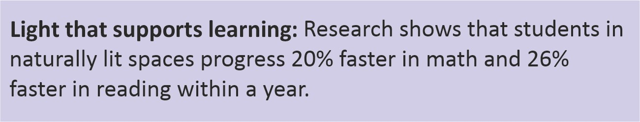 - Balanced light: Natural daylight and glare control boost focus and concentration.