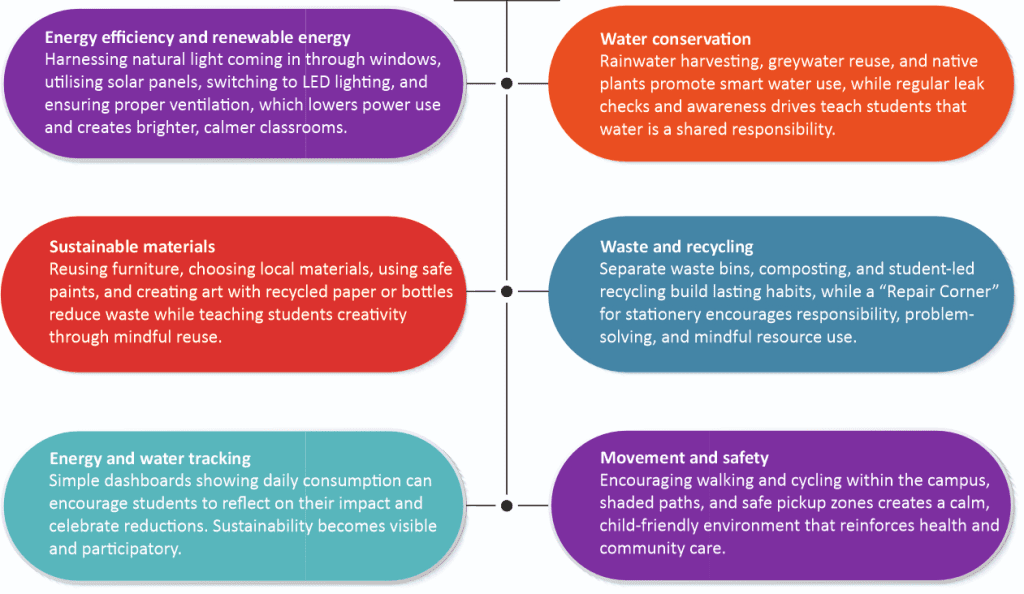 Gardens are essential, but they are only part of what makes a campus sustainable. Eco-friendly schools utilise every corner wisely – well-lit classrooms and efficient water storage and management, which help students learn from these daily choices.