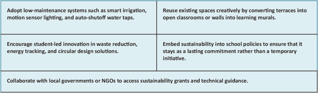 Even with intent, some schools still encounter challenges: limited space, budgets, or technical expertise. Yet, eco-conscious schools show that solutions often lie in creativity.