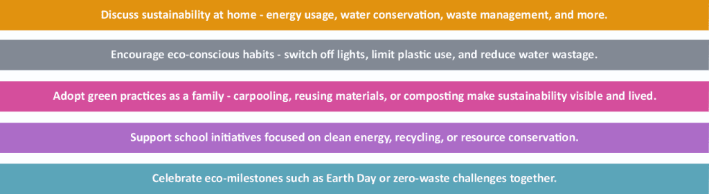 Sustainability thrives when families mirror it at home. Every mindful action – saving energy, reducing waste, reusing resources – turns awareness into habit and reinforces what students learn at school.